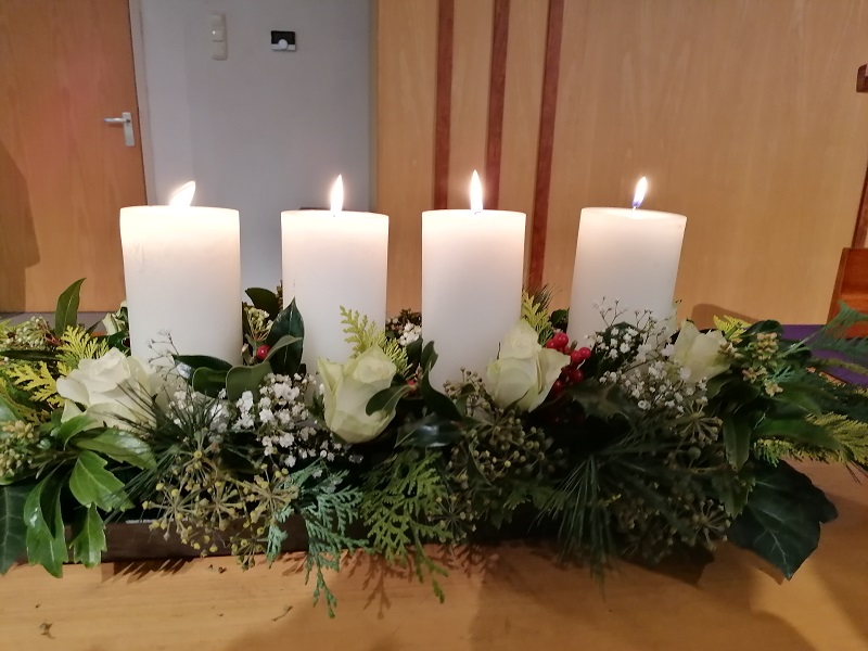 ![]() Nu mag het vierde kaarsje aan. Vier lichtjes laten horen: nog een paar nachtjes slapen, dan wordt het Kind geboren! |